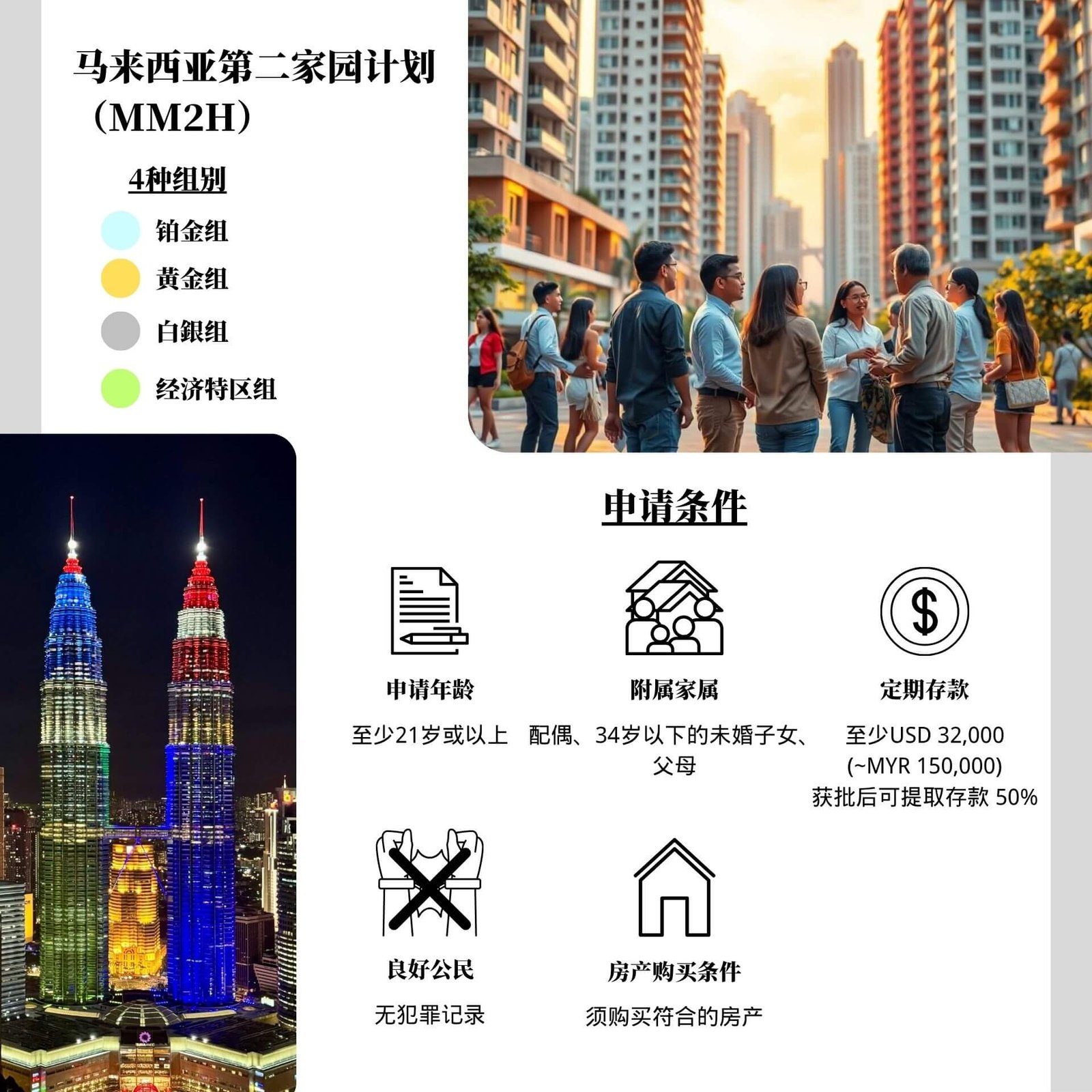 “马来西亚-我的第二家园(MM2H)”是政府推行的长期居留签证计划,提供长达 20 年的居留权(视组别而定)与自由出入境待遇。凭借优质医疗、国际教育及高生活品质,该计划已成为全球移居首选。