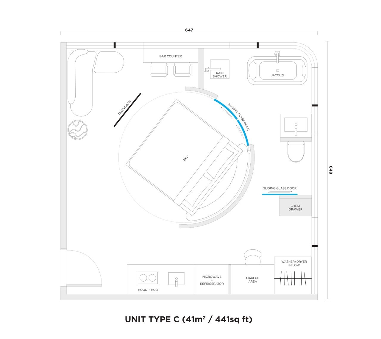 | タイプ C | Studio | 5,683万円 | RM 1,567,000 | 41m² |