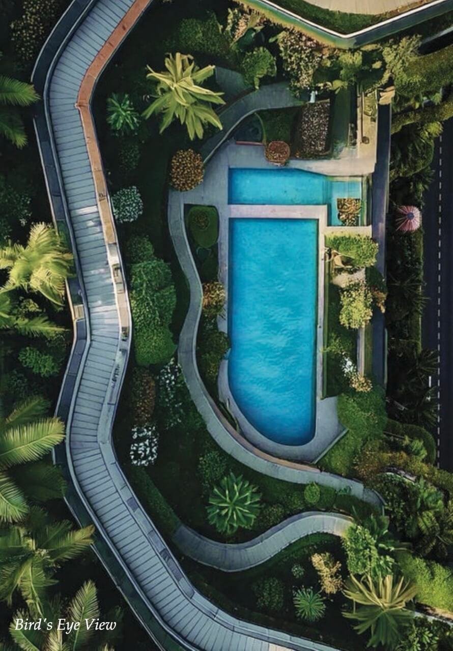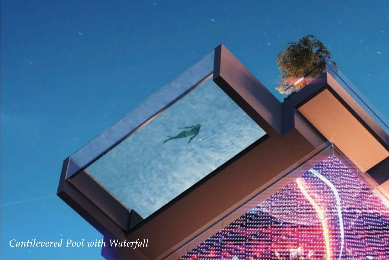 ジム、プール、ルーフトップバー、駐車場